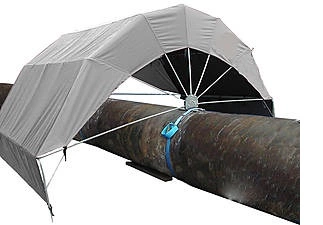 Зонт сварщика используется для укрытия рабочих мест сварщиков от атмосферных воздействий при зачистке, сварке стыков и изоляции труб при осуществлении ремонтных работ магистральных нефтегазопроводов и трубопроводов, на строительстве. Защищает зону сварки и рабочих от атмосферных осадков (дождь, снег и т.д.).